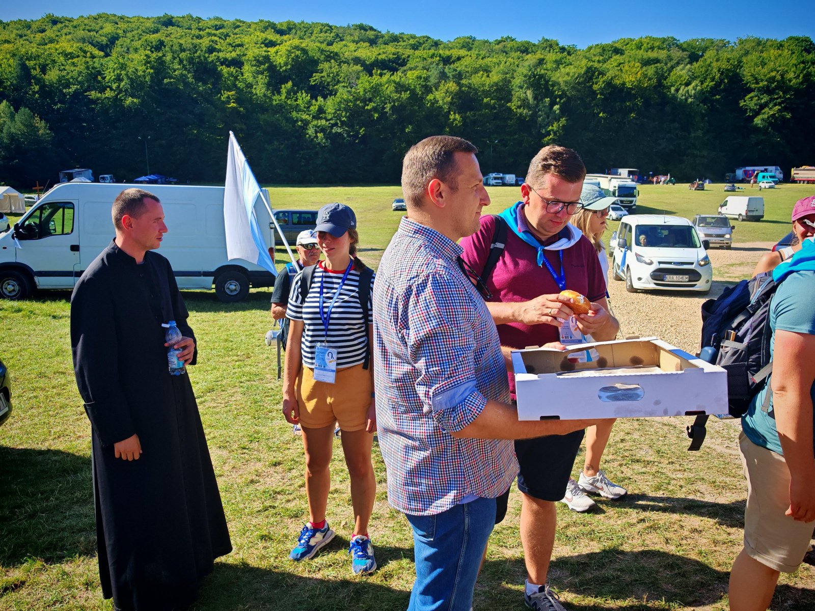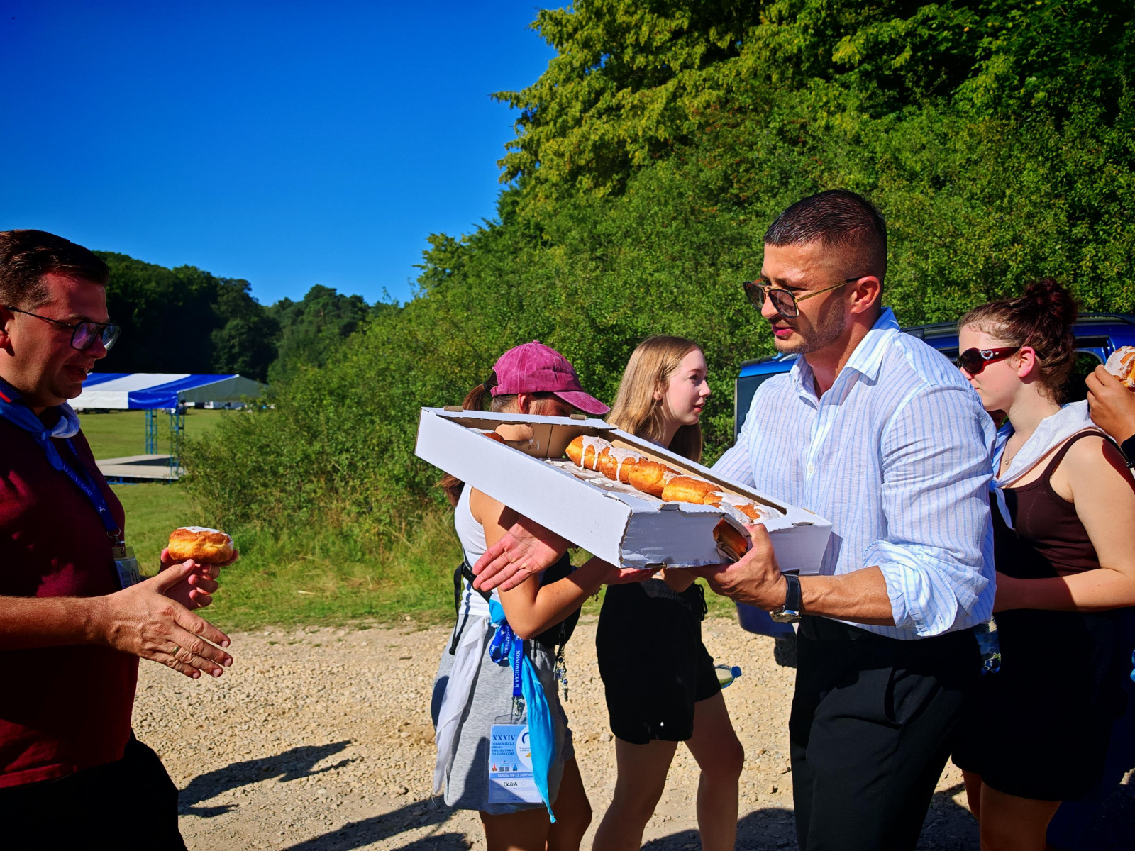 A zaraz potem… małe co nieco dla ciała – pyszne pączki, od Starosty Olkuskiego Bogumiła Sobczyka i Vice Starosty Rafała Czeladzkiego,, które dodały nam energii na start dnia. ![]()